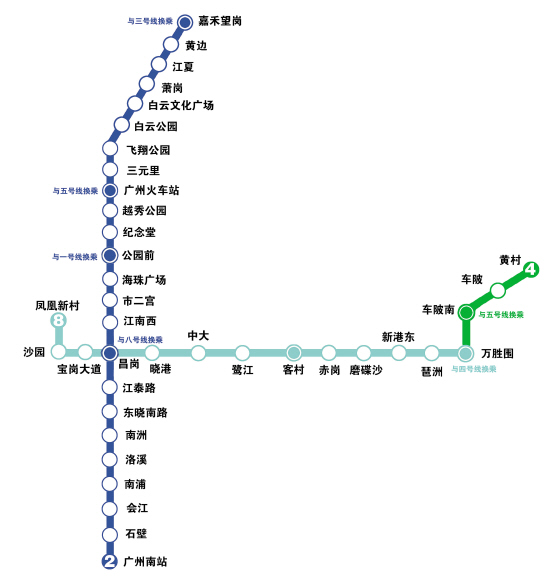 新2号線は、北は白雲区の嘉禾から、三元里、広州駅、海珠広場などを経て、番禺の広州南駅までをつなぎます。これにより市内から広州南駅までのアクセスが格段に向上します。