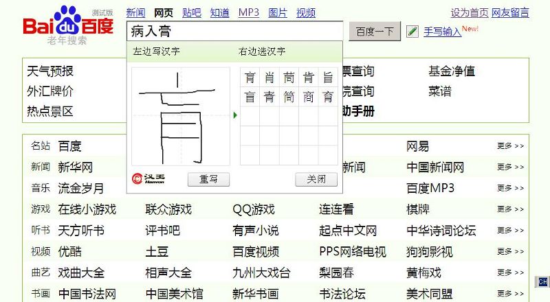 百度 老年捜索 手書き入力