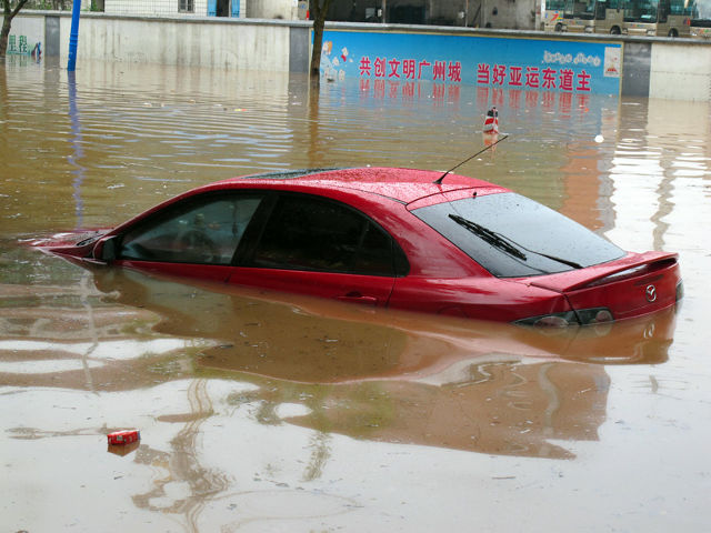 7日未明の大雨により、かなりの数の自動車が水没しました。報道では13000台の自動車が被害を受けたとのこと。広州市政府は、保険会社に保険を適用するよう指導しています。