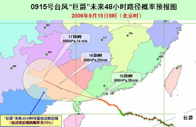第15号台風が今朝、広東省に上陸しました。この台風には、巨爵(ju4jue2)という名前が付けられています。