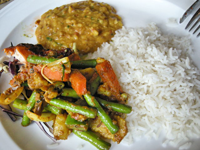 このように食べきれない程のボリュームで、1人68元(サービス料を入れると78元)というお値段です。写真にはありませんが、飲み物(ビール、ジュースなど)もついています。味も極めて美味しいと思います。しかも、接客態度もすばらしいです(インド人服務員です)。
